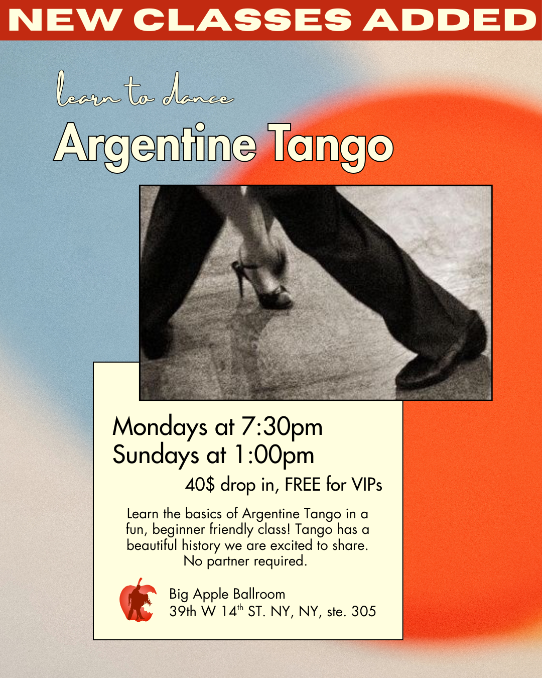At Big Apple Ballroom, our group dance classes in NYC combine expert instruction with a fun and social environment. Whether you’re looking to pick up a new hobby, prepare for a special event, or just dance for the joy of it, our group classes are the perfect place to start.